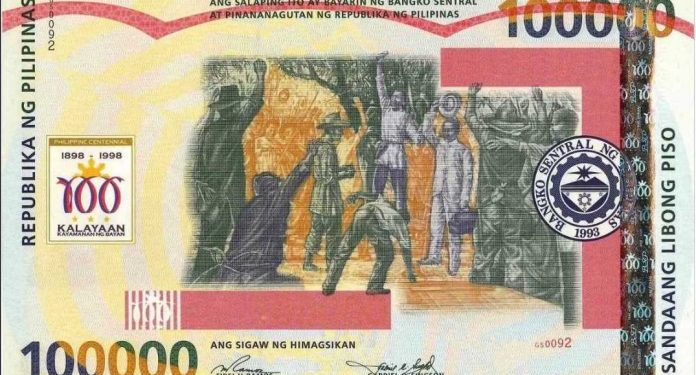Kartëmonedha me përmasat më të mëdha në botë është kartëmonedha filipinase 100,000 peso.