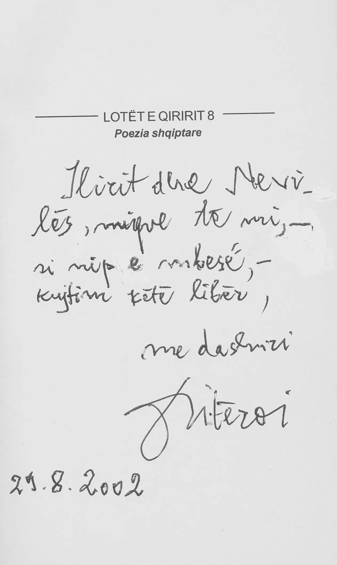 Ishim mbledhur të gjithë fëmijët e grupit dhe po përgatiteshim për provat e anketës muzikore të fjalës artistike që organizohej çdo fundviti në instititucionin tonë, e, secili kishte pjesën e vet që do të interpretonte në këtë veprimtari me karakter festivo-edukativ. Atë natë, nuk më zuri gjumi. Ndieja një ngazëllim pafajësie dhe emocion deri angështim, ngase një nga vjershat e bukura të autorit më të dashur për ne fëmijët në atë program, mësuesja ma kishte besuar mua. Të nesërmen, lashë orën e parë të mësimit, e me padurim u nisa drejt bulevardit, atje buzë detit, ku ndodhej edhe libraria e qytetit. Me kursimet e mia që na i jepnin çdo muaj për t’i pasur si lekë xhepi, iu luta librarit të më jepte librin e ri të Dritëroit. Ai qe një libër me kapak ngjyrë vishnje, një përmbledhje e plotë me vjersha dhe poema, e titulluar: “Fjala gdhënd gurin”. Vëllimi poetik sapo kishte dalë në treg. Hyra në librari i gëzuar dhe me nxitim të shkujdesur, pa e përshëndetur librashitësin, i cili, kur i kërkova librin, ngrysi vetullat, ngriti supet si për të më thënë se ai libër ishte shitur. I zhgënjyer, bëra hapa pas nga dera e jashtme për të dalë, por sërish, ai zë i butë e miqësor i librashitësit më bëri ta ndalja hapin. – Prit – më tha, – e kam një kopje që e kam ruajtur për vete. Atë do të ta japë ty! Nuk iu besova veshëve. Aty për aty, e gjithë mërzitja u kthye në një rrezatim të ngrohtë si dielli i mëngjesit. Librashitësi hyri në kthinat e pasme të eksponatave dhe pas pak u kthye me kopjen e librit. I zgjata kartmonedhën 5 lekëshe, e, pasi e falenderova, mora librin në dorë dhe dola vringthi nga dyqani. Vrapova me një frymë për të kapur orët e mbetura të mësimit. Mësuesja kujdestare në shkollë më tërhoqi vërejtje për mungesën e orës së parë, por, kur i shpjegova arsyen, ajo më hodhi dorën në qafë duke më përkëdhelur flokët. – Mos e përsërit më, herës tjetër duhet të marësh leje. Shko tani, ulu në bankë, – më tha.