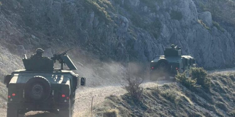 Pamjet e publikuara nga Ministria e Mbrojtjes tregojnë efektivët në aksion, në kushte të vështira terreni, duke simuluar situata reale operacionale.
