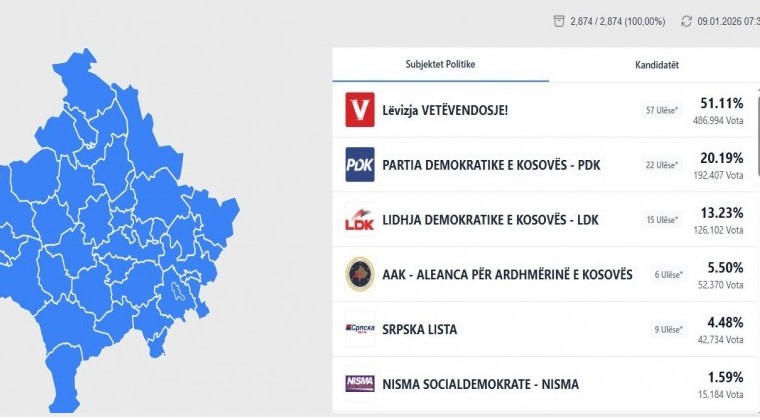 Në zgjedhjet e parakohshme parlamentare të 28 dhjetorit, Lëvizja Vetëvendosje mori 51.11 për qind të votave dhe do të ketë 57 vende në Kuvendin e Kosovës, PDK mori 20.19 për qind dhe numri i votave përkthehet në 22 mandate deputetësh, LDK me 13.23 për qind do të ketë 15 mandate dhe AAK që u mbështet nga 5.5 për qind e votuesve do të përfaqësohet në Kuvend me 6 deputetë.