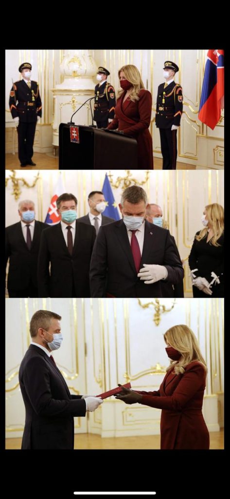Në një ceremoni aspak të veçantë, ku të gjithë zyrtarët e lartë të shtetit kanë qenë me maska, Pellegrini i ka paraqitur dorëheqjen e tij presidentes, Zuzana Čaputová.