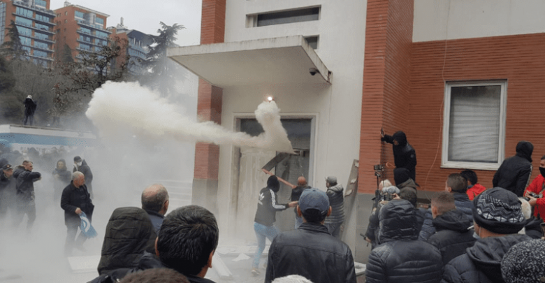 Selia e Partisë Demokratike u sulmua gjatë ditës së 8 janarit nga mbështetës të ish kryeministrit Sali Berisha, të cilët iu përgjigjen thirrjes së tij për marrjen nën kontroll të godinës ku po qëndronte kryetari demokrat Lulzim Basha dhe drejtues të tjerë të partisë.Fillimisht dera kryesore e selisë u hap me forcë, përpara orës 12.00 e cila ishte ora në të cilën ishte thirrur protesta. Xhamat e saj u thyen por protestuesit u ndalën në pjesën e hollit, ku mesa duket u gjenden përpara dyerve të tjera të përforcuara me veshje hekuri. Pas këtij momenti nuk ka patur asnjë cast qetësie. Mbështetësit e ishkryeministrit Berisha provuan të hyjnë nga drejtime të ndryshme. Një tentativë e disa personave që me anë të shkallëve u ngjitën në katin e dytë, në një ballkon në krahun e majtë, u zmbraps, nga disa persona nga brenda godinës. Një prej protestuesve mbeti i plagosur në kokë. Përpjekjet e tjera po ashtu janë zmbrapsur, ndërsa nga brenda selisë po përdorej gaz lotsjellës. Situata në selinë e Partisë Demokratike u qetësua pasi policia ndërhyri me kërkesë të deputetëve që ndodheshin brenda saj të cilët kishin deklaruar se ndjeheshin të kërcënuar nga sulmi i dhunshëm i mbështetësve të ish kryeministrit Sali Berisha. Njësitë speciale morën kontrollin e godinës. Oborri dhe e gjithë zona përreth u boshatis, pas përdorimit të gazit lotsjellës.