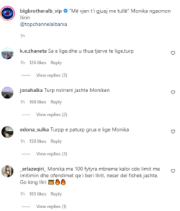 Kjo ka shkaktuar edhe shumë reagime në rrjet, ku në faqen zyrtare të Instagramit të “Big Brother VIP”, ndjekësit kanë lënë komente të shumta ku kritikojnë aktoren.