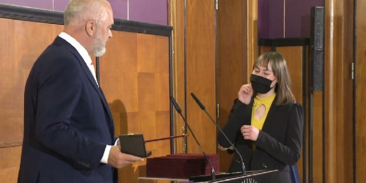 “Me siguri ju kanë thënë në klasë, cunat e mamit, si gocat e babit. në sensin që nuk i kemi lënë asnjëherë detyat, ato që duheshin bërë për të bërë atë që duhesh. Do të ketë plot njerëz që nuk do ta duan suksesin tuaj, mos harroni se cfarë ka thënë Faik Beu, shqiptarër falin cdo gje përvec suksesit. Kështu që vazhdoni rezistoni se bota do të jetë e juaja, jo e atyre që do ju ndeshin në rrugë në ambinetet ku po jetoni. Ata janë udhëtarë që do të mbeten sa cmbetet era, ju do të lini pas shumë arsye për të tjerët që të përballojnë dhe të kapërcejnë justifikimet dhe të ngjiteni në majën ku jeni nisur. Po ia le ministres kërkimin e ndjesës për vonesën e marrjes së kësaj medalje. Sa për mua jam dhe unë një shkak për vonesën se kur pashë se cfarë ishte certifikata e medaljes i thashë kjo nuk bëhet. Medalja e artë është një xhevahir që nuk e bëjmë me diamante dhe florinj por është si medalja e atyre që bëhen nder i kombit, i atyre që kanë bërë një heroizëm dhe na u desh pak kohë që të përgatisim medaljet për ju”, tha Rama.