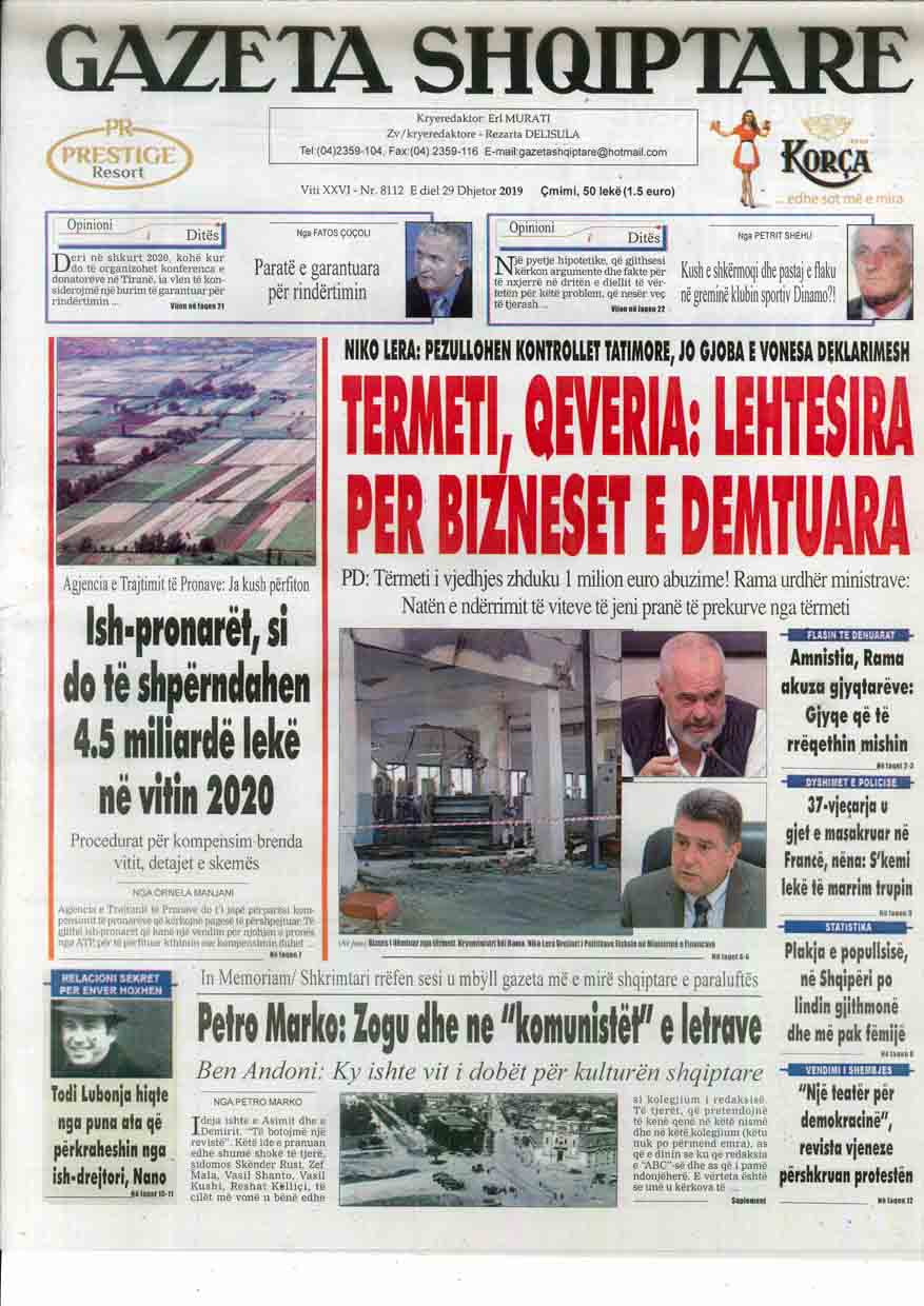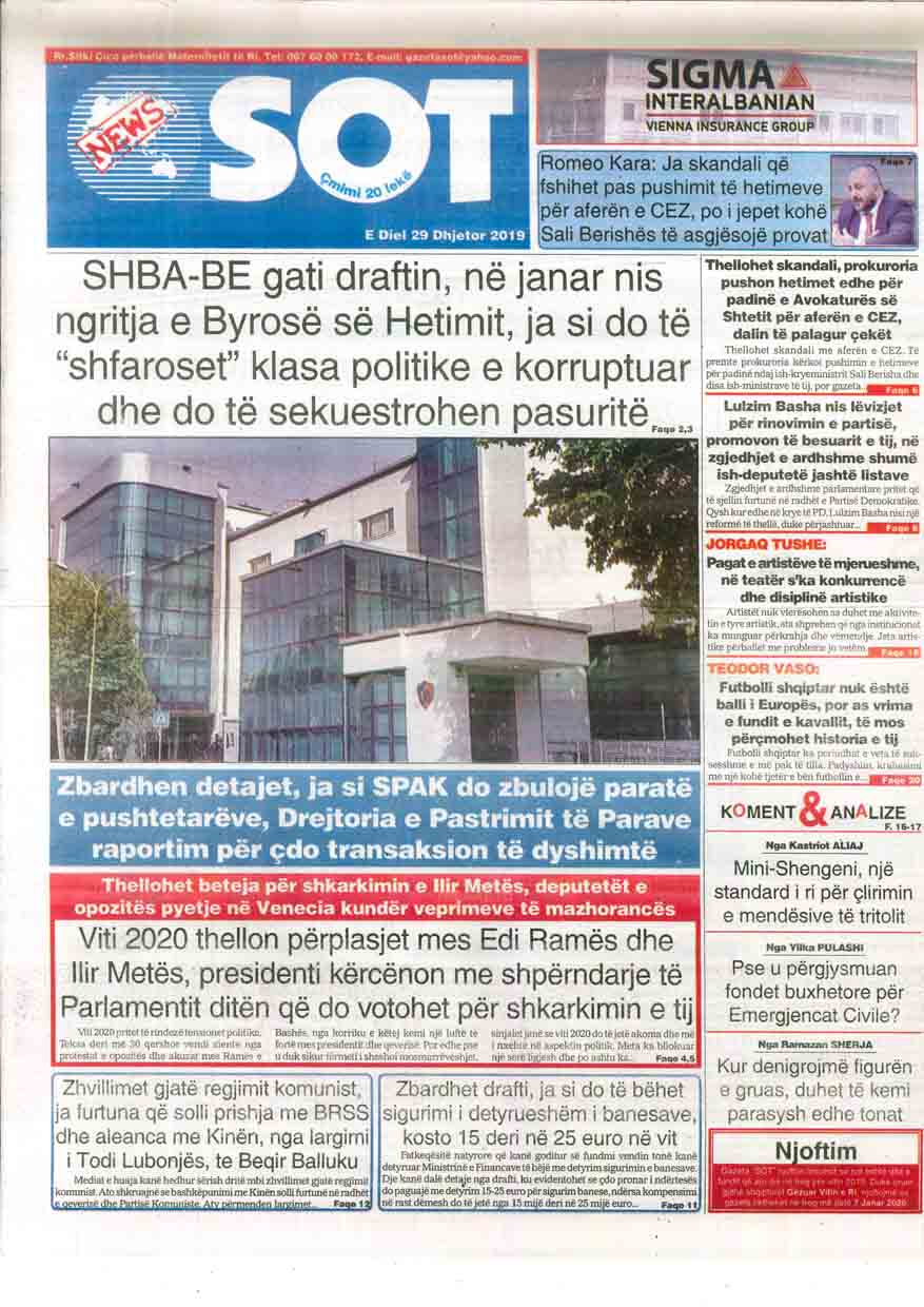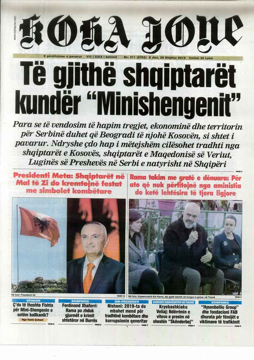 Këto janë disa nga titujt e sotëm të medias shqiptare të shkruar…