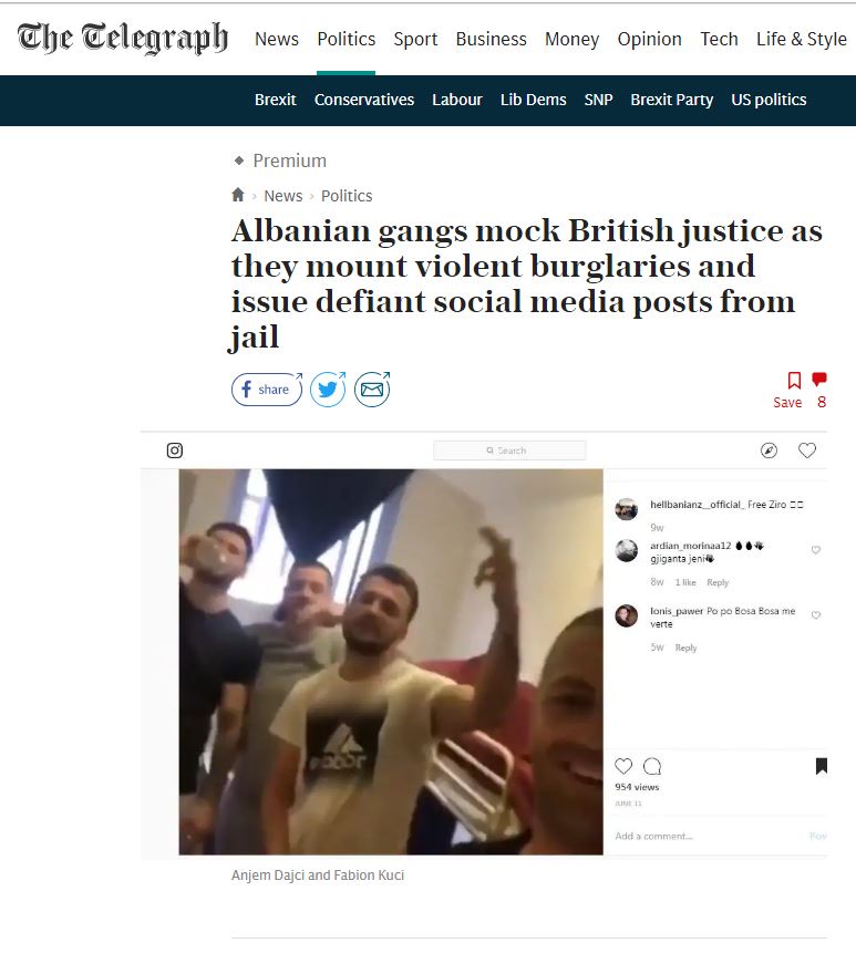 Sipas asaj që shkruan e përditshmja britanike “The Telegraph”, kriminelët shqiptarë tallen me drejtësinë atje. Media në fjalë nënvizon se kriminelët shqiptarë montojnë vjedhje me dhunë dhe bëjnë postime të çuditshme.