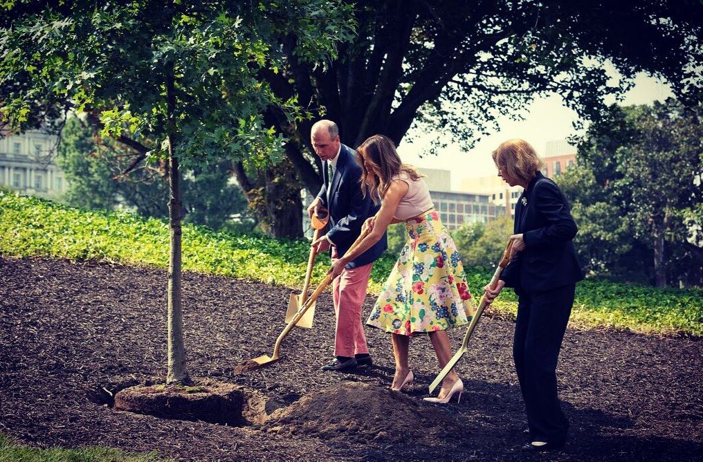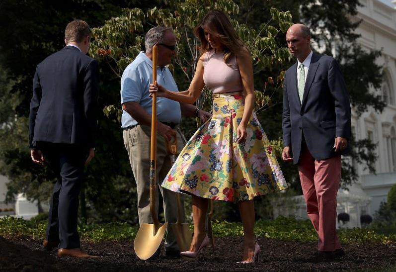 Melania Trump ishte shumë e zënë dje pasi mori pjesë në ceremoninë e mbjelljes së pemëve në kopshtet e Shtëpisë së Bardhë.