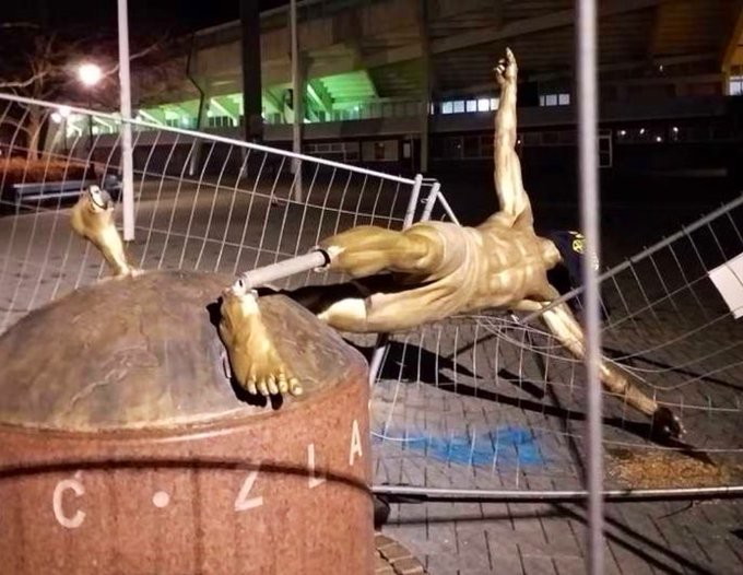 Statuja e Zlatan Ibrahimovic, e cila vetëm në vjeshtën e shkuar u vendos përpara stadiumit të Malmo në Suedi nuk ekziston më. Pas disa sulmeve vandal që pësoi javët e shkuar, persona ende të paidentifikuar e kanë rrëzuar përfundimisht atë.