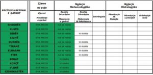 Sipas Institutit të Gjeoshkencave sot (e hënë, dt.07) priten reshje të dobëta në qarqet Berat, Korçë, Vlorë dhe Gjirokastër, ndërsa në qarqet Dibër, Durrës, Tiranë, Elbasan dhe Fier reshjet priten të jenë lokalisht të dobëta.