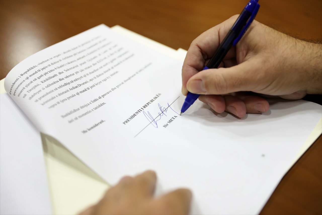 Presidenti ka njoftuar shqiptarët përmes Facebook se e ka kallëzuar kryetarin e KED. Ai shkruan se me këtë nënshkrim e mbajti fjalën. Ndër të tjera, Ilir Meta shton se po i jep një mundësi historike Reformës në Drejtësi.