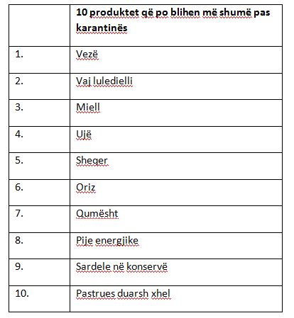 Disa të përbashkëta me sjellen e konsumatorëve në vende të tjera i kanë pasur edhe këtu por në një listë nga njëshi tek dhjeta për produktet më të shitura në listë gjejmë vezën, orizin dhe pijet energjike.