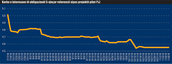 Që nga 17 korriku i këtij viti, si titull referencë është përcaktuar obligacioni 5-vjeçar, interesi i të cilit publikohet çdo ditë nga Ministria e Financave dhe Banka e Shqipërisë. Aktualisht interesi referencë është 4.55%, duke shënuar rënie me 0.45 pikë përqindje që nga 17 korriku, kur nisi të testohej mënyra e re e tregtimit. Rënie në nivele të ngjashme kanë pësuar edhe interesat e letrave të tjera të borxhit, si bonot e thesarit, pasi në gjysmën e dytë të vitit, fluksi i emetimeve bie, për rrjedhojë, edhe norma e interesit.