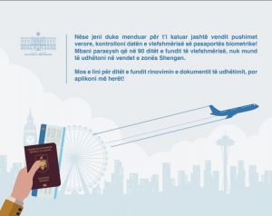 Duhet të keni parasysh, që në 90 ditët e fundit te vlefshmërisë se pasaportës biometrike, nuk mund të udhëtoni në vendet e zonës Shengen.