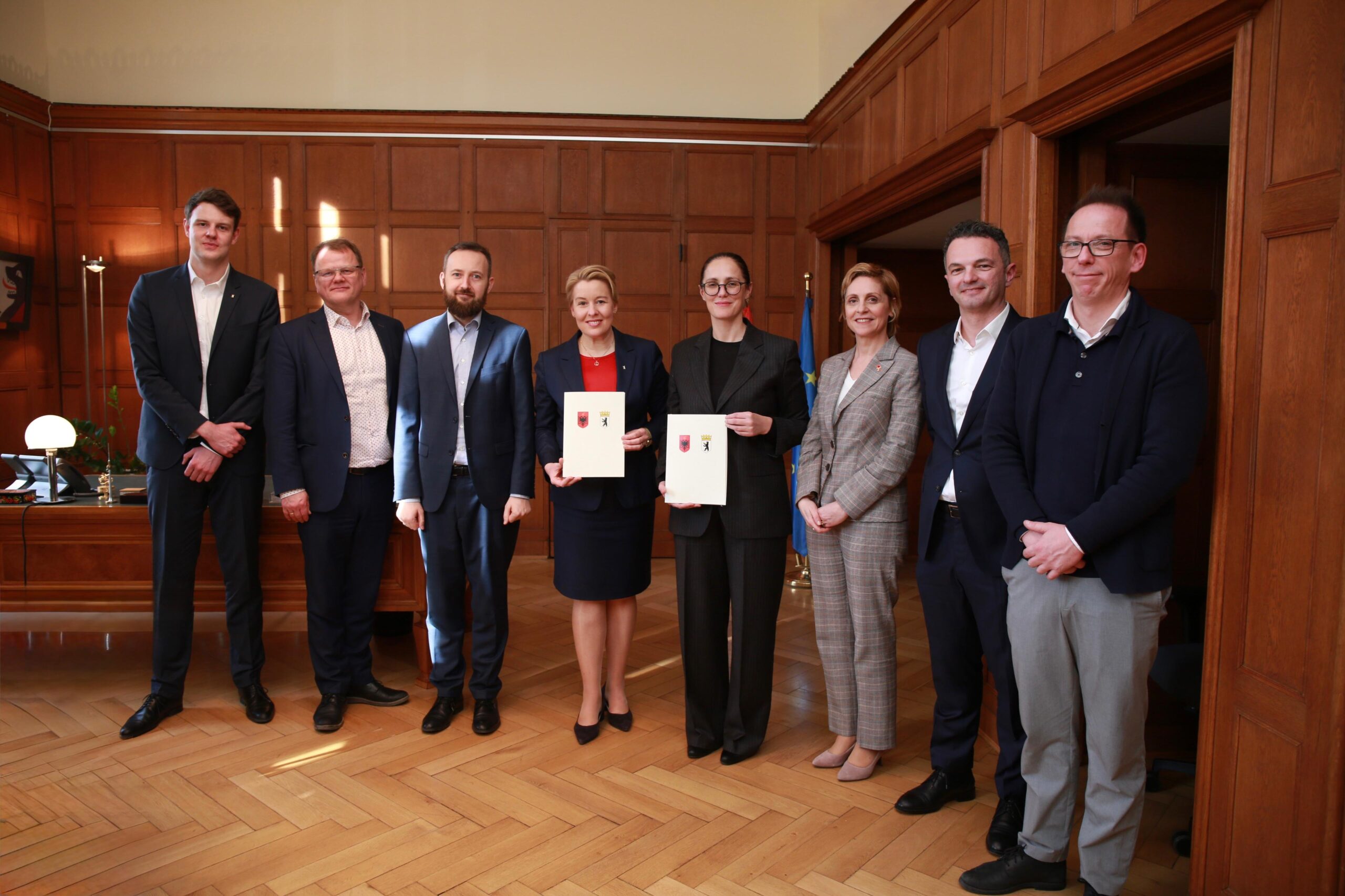 Ministrja e Ekonomisë dhe Inovacionit, Delina Ibrahimaj, zhvilloi një vizitë zyrtare në Berlin ku nënshkroi Deklaratën e Përbashkët të Qëllimit (DPQ) me Kryetaren e Bashkisë dhe Senatore për Çështjet Ekonomike, Energjinë dhe Ndërmarrjet Publike të Berlinit, Franziska Giffey.