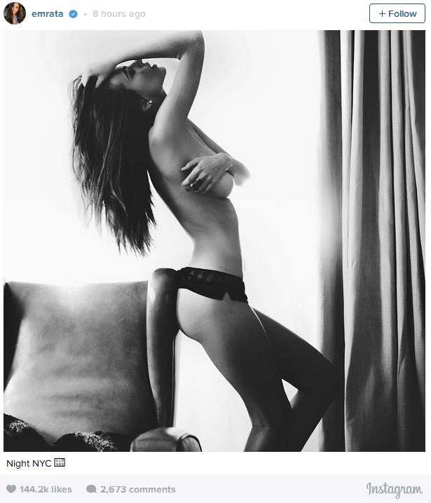 Modelja seksi Emily Ratajkowski vazhdon të shfaq format e saj seksi. Ajo se fundmi ka pozuar pothuajse topless, duke i ka kënaqur fansat e saj me disa foto hot. Modelja dhe aktorja 24-vjeçare ndodhet në Nju Jork për filmin e saj të fundit.