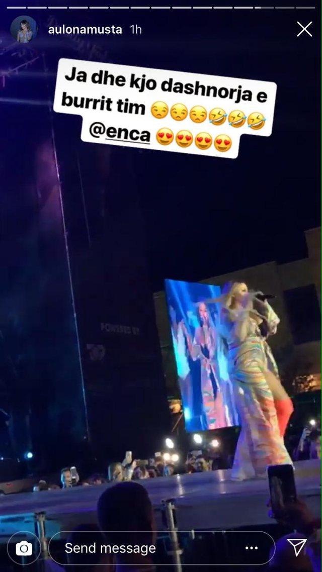 Në radhët e publikut ishte edhe moderatorja Aulona Musta, e cila publikoi video të shumta në Instastory, ku tregoi se po e shijonte pa masë koncertin.