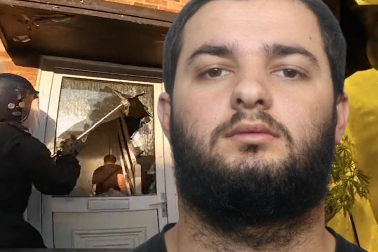 Në videon e postuar në llogarinë në X (ish-Twitter) të policisë së Luginës së Thames, tregon oficerët duke goditur derën kryesore të banesës me forcë, ndërsa Armond Lika shihet duke tentuar për t’u arratisur nga “shtëpia e barit”.