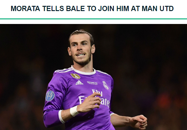 Por, Morata nuk dëshiron që i vetëm të transferohet në Old Trafford, pasi ai ka ftuar edhe një yll tjetër të Realit.Sipas Don Balon, Morata ka ftuar Gareth Bale që të largohet nga Reali dhe së bashku me të, të transferohet në United.