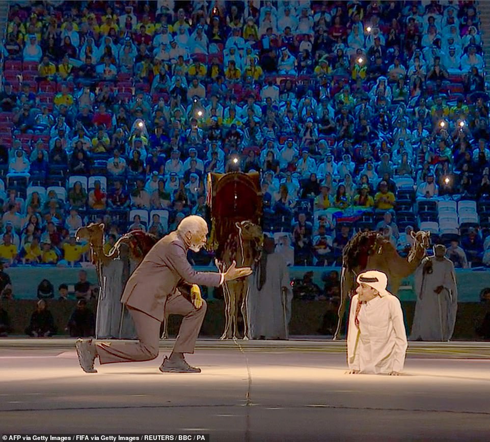 Me pjesëmarrjen e aktorit të madh hollivudian, Morgan Freeman, në ceremoni pati valle me shpata, numra kërcimi dhe një spektakël dritash të jashtëzakonshëm. Pas lajmeve se shumë këngëtarë të mëdhenj kishin refuzuar të merrnin pjesë në ceremoni, për shkak të akuzave për abuzime me të drejtat e njeriut në Katar, në skenë u ngjit vetëm këngëtari koreano-jugor Jung Kook.