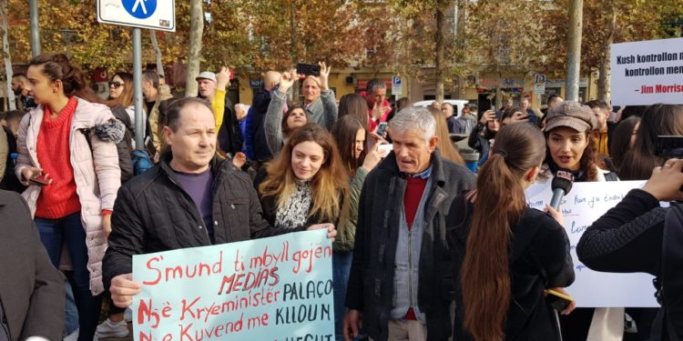 Gazetarët, aktivistët dhe analistë, mbështetur dhe nga opozitarët, po zhvillojnë një protestë kundër paketës anti-shpifje të qeverisë. Protesta nisi në orën 09:30, para Parlamentit, aty ku deputetët do të zhvillojnë në orën 10:00 seancën plenare, ku në rend dite është edhe votimi i kësaj pakete. Protesutesit janë shfaqur me pankarta në duar, ku japin mesazhe të ndryshme për lirinë e fjalës.