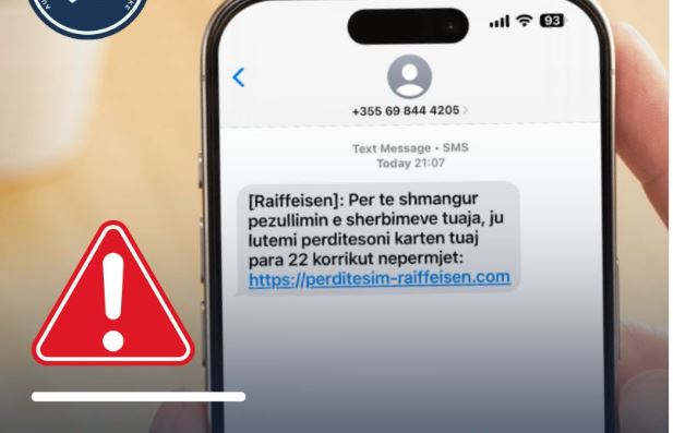 Autoriteti Kombëtar për Sigurinë Kibernetike (AKSK) ka njoftuar se ka neutralizuar me sukses një sulm të tipit “smishing”, që synonte qytetarët shqiptarë përmes SMS-ve të rreme në emër të Raiffeisen Bank, me qëllim vjedhjen e të dhënave bankare.
