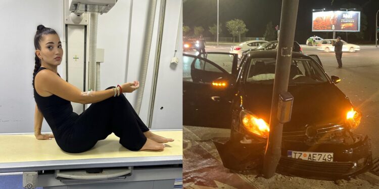 Ka qenë ajo vetë që ka ndarë 2 foto, një teksa ndodhet në urgjencën e spitalit dhe të dytën makinën e saj të shkatërruar, si pasojë e përplasjes.