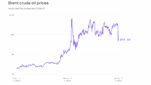 Çmimi i kontratave të ardhshme të naftës së papërpunuar Brent ra rreth 13% në rreth 95 dollarë për fuçi. Por është ende shumë mbi nivelin prej rreth 73 dollarësh pak para fillimit të luftës në fund të shkurtit.