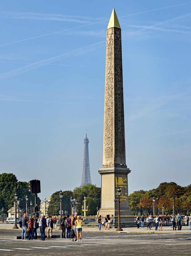 Egjypti shpejt u përmbyt nga studiues e mes tyre ishte dhe filologu francez, Champollion. Ishte ai që u bë deshifruesi i hieroglifëve, i ndihmuar për këtë nga gjetja e çelësit të tyre, Gurit të Rozetës dhe studimi i obeliskëve të Luksorit. Monumentet dhe sheshet e famshëm në Paris janë të panumurt, njëri më i bukur se tjetri, të mrekullueshme me arkitekturë dhe impresionuese. Ideja për t’i dhënë Parisit një obelisk egjiptian ka qenë e Napoleon Bonapartit. Në skemat e mëdha ndërtimore të Napoleonit për Parisin përfshihej dhe një obelisk egjyptian në boshtin përmes Konkordit të Madalenës dhe pallatit të Burbonëve. Ai, gjatë fushatës së Egjiptit, i kishte parë këto monumente të jashtëzakonshme të krijuara nga dora njerëzore, si simbol të pushtetit, të perandorive. Ndërsa merrej me luftëra, ideja ngeli ide dhe s’pati mundësi të organizonte sipërmarrjen e këtij aksioni, kur dhe zotërimi i Detit Mesdhe nga ana e anglezëve ishte një tjetër pengesë serioze.