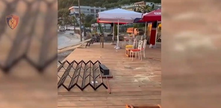 Gjatë kontrollit u konstatua se shtetasi G. Sh. kishte ndërtuar platformë me konstruksion druri dhe betoni, në zonën e plazhit, pa lejen e organeve kompetente.