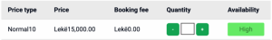 Pjesa e karshisë me tre blloqet E104, E105 dhe E106 të cilësuara si Kategori 1, kushtojnë 15.000 lekë ndërsa kati I dytë I stadiumit dhe pjesët më anësore të karshisë kanë një çmim prej 9000 lekësh