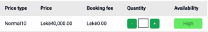 Ndërkohë që edhe tribuna ka disa kategori, ku në pjesët anësore çmimi është 25.000 lekë dhe duke u afruar në qendër dhe deri tek kategoria VIP janë nga 40.000 dhe më e kushtueshmja 50.000 lekë.