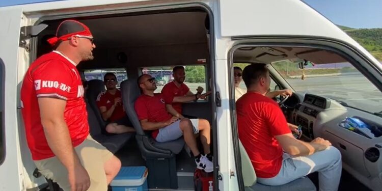 Tifozët kuq e zi nga Kosova, së bashku me djemtë e Luginës së Preshevës, janë organizuar për të përkrahur kombëtaren shqiptare, përmes këngëve patriotike, thirrjeve “Shqipëri etnike” dhe “Fitore Shqipëri”, duke krijuar një atmosferë elektrizuese në kufi, shkruan A2 CNN.