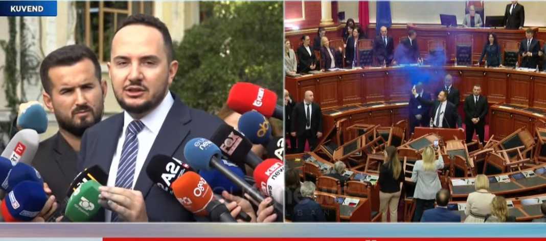 Deputeti i Partisë Demokratike Ervin Salianji, i cili ndezin flakadan brenda Parlamentit, pas seancës plenare që u zhvillua në kaos, akuzoi qeverinë dhe mazhorancës socialiste për përfshirje në korrupsion.