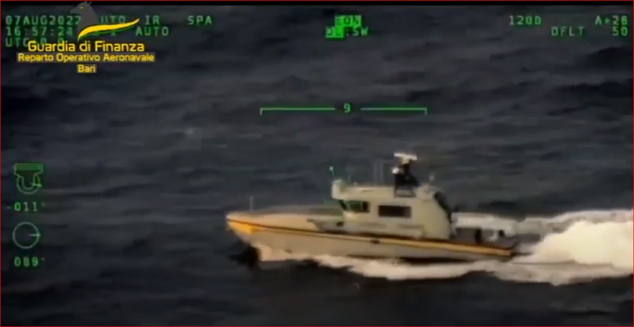 Në pranga ranë 3 shqiptarë dhe 2 ukrainas teksa po bënin shkëmbimin e drogës në det të hapur. Tre skafe ishin nisur nga Shqipëria të ngarkuara me 1 ton marijuanë, ndërsa një velirë e drejtuar nga dy ukrainasit i prste në thellësi të Jonit. Në momentin e shkëmbit ka ndërhyrë Guardia di Finanza dhe ka bërë arrestimin e dy ukrainasve Bychkovi Serhii dhe Senkevych Serhii, 43 dhe 62 vjeç.