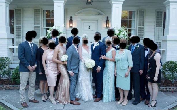 Duke hedhur foton ata shkruan: “Nëna e dhëndrit i bëri flokët e saj në të njëjtën mënyrë si nusja, kishte veshur një fustan të gjatë gati të bardhë dhe është ngjitur me dhëndrin”.