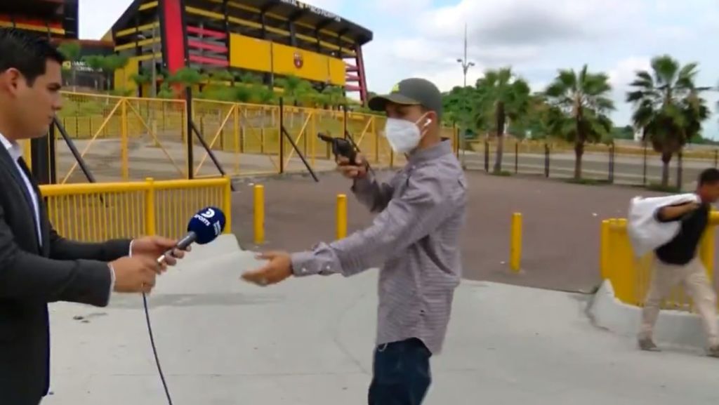 Po raportonte për fitoret në kampionat, por në fund të kronikës humbi telefonin, dhe rrezikoi jetën. Ngjarja e pazakontë ndodhi në kryeqytetin e Ekuadorit, Guayaquil, ku gazetari sportiv Diego Ordinola po prezantonte ndeshjen e radhës në Stadiumin Monumental.