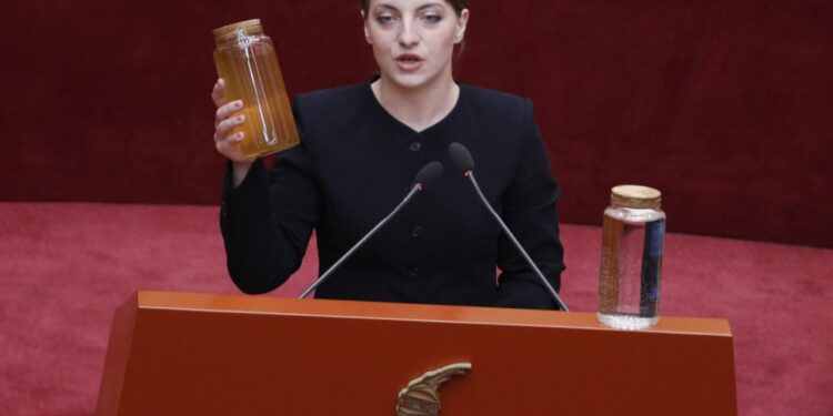 Me dy shishe uji me vete, deputetja socialiste e Shkodrës, Marjana Koçeku, ka ngritur shqetësimin për ndotjen e lumit Drin.