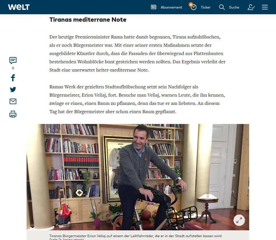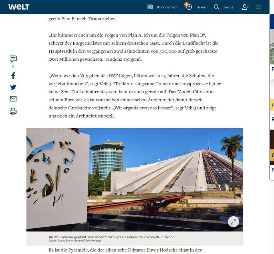 Gazeta me e madhe gjermane Die Welt, vazhdon serinë e saj të publikimeve për Shqipërinë në prag të hapjes së negociatave me BE, kësaj rradhe duke u fokusuar tek transformimi i Tiranës.