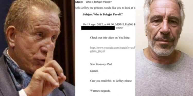 Në një nga email-et e vitit 2012, përmendet edhe Behgjet Pacolli. Email-i, i datës 19 shtator 2012 dhe i dërguar nga konsulli i Kosovës në Tajlandë, Mom Luang Rajadasari Jayankura, i drejtohej Jeffrey Epstein dhe përmbante titullin: “Kush është Behgjet Pacolli?”.