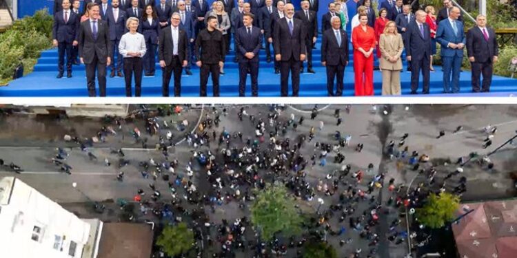 Fotoja e grupit në këtë samit politikisht të paharrueshëm për Shqipërinë e vogël do të hyjë në histori. Ndërsa imazhi i Berishës me megafonin do të harrohet shpejt. Bashke me shpifjet e tij, ato të përsëritura edhe sot, kur, pa qenë as në listën e folësve zyrtarë, foli vetëm në një nga sesionet e mbyllura, të një forumi të së djathtës botërore të mbledhur në Bruksel. Në fund të punimeve, u votuan 5 rezoluta, por nuk pati asnjë fjali as për Shqipërinë dhe as për denoncimet e Berishës. Me një anglishte të pasigurt dhe duke lexuar me vështirësi nga një iPad, interpretoi vajtimin e tij para partive “motra”, duke iu lutur për mbështetje për të “zbuluar masakrën zgjedhore” të kryer nga Edi Rama. Një masakër, sipas tij, e realizuar nga një Shqipëri që Rama e ka kthyer në një “narkoshtet”. Një narkoshtet në të cilin, ndërkohë, kishin mbërritur të gjithë liderët e Europës, të gjithë gjoja bashkëpunëtorë të narkomafies, përfshirë kancelarin gjerman Friedrich Merz, kryeministren italiane Giorgia Meloni, dhe Presidenten e Komisionit europian, Ursula Von der Leyen, të tre, ndër përfaqësuesit më të rëndësishëm të së djathtës europiane. Të gjithë ishin sot në Tiranë me Edi Ramën, ndërsa Sali Berisha ishte vetëm në Bruksel.