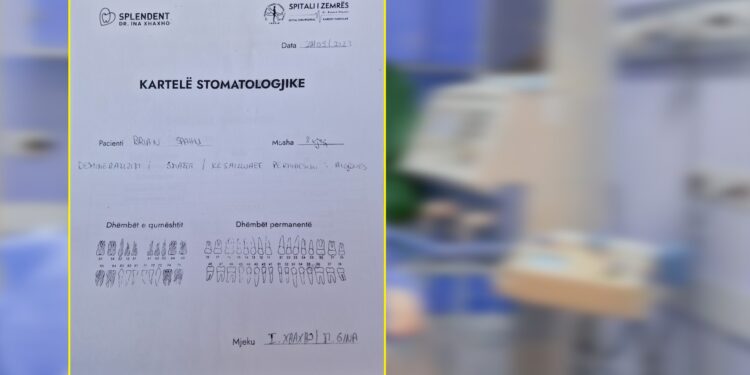 Hetuesit kanë sekuestruar kartelën stomatologjike të 3-vjeçarit.