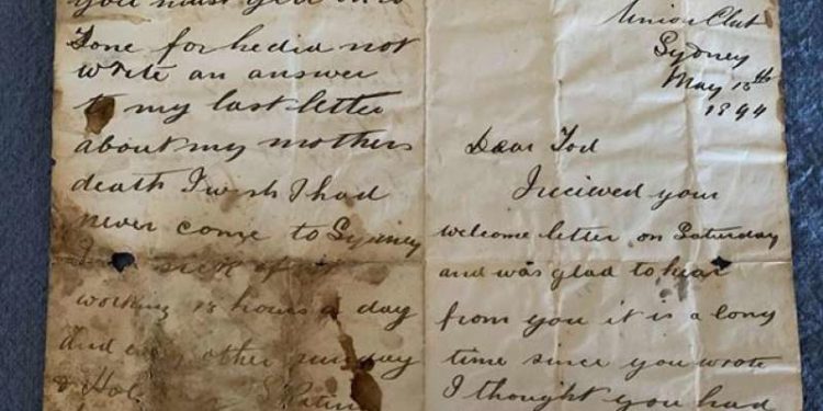 Në letër ai shkruante për vështirësitë në punë në Sidney duke thënë se do donte të mos kishte shkuar kurrë.