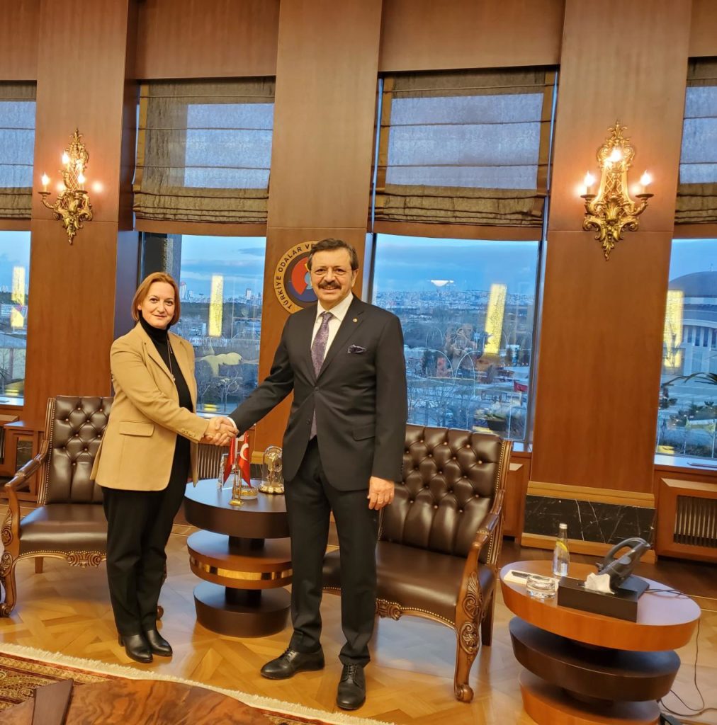 Ministrja Denaj zhvilloi një takim edhe me presidentin e Unionit të Dhomave të Tregtisë dhe Industrisë, TOB, Rifat Hisarciklioglu, me të cilin u dakordësuan për organizimin brenda dy muajve të ardhshëm të një takimi të ngushtë biznesesh nga të dyja vendet në Tiranë, në zbatim të marrëveshjes të nënshkruar mes dy unioneve, si dhe dhënien e asistencës teknike për të ndihuar në rritjen e rolit të Bashkimit të Dhomave të Tregtisë së Shqipërisë dhe fuqizimin e kapacitetit të saj.