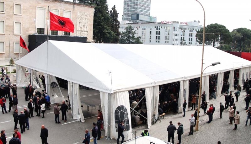 Më 18 shkurt 2017, Partia Demokratike ngriti një çadër proteste përballë Kryeministrisë, duke shpallur nisjen e një aksioni të përhershëm kundër qeverisë së Edi Rama. Kërkesa zyrtare ishte “zgjedhje të lira dhe të ndershme”, ndërsa kushti politik i vendosur nga opozita ishte formimi i një qeverie teknike që do të garantonte procesin zgjedhor.