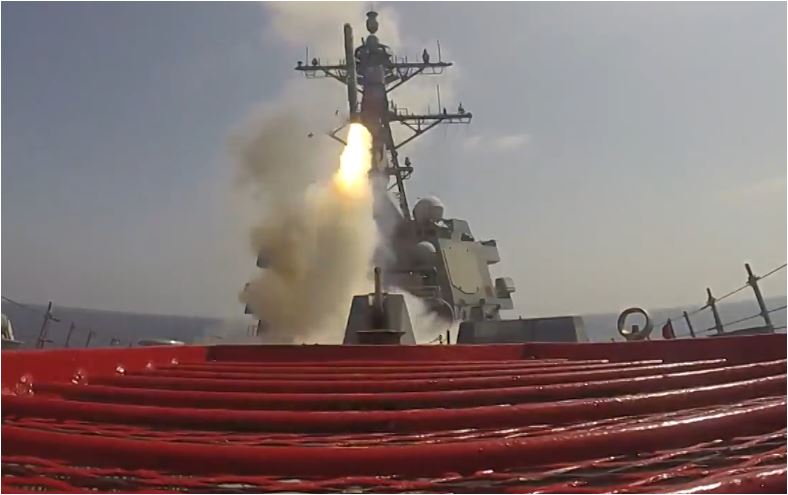 Raketa sulmi tokësor Tomahawk, të lëshuara nga anijet luftarake amerikane. Një prej tyre u qëllua nga shkatërruesi USS Thomas Hudner.