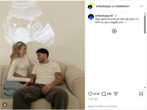 Këngëtari publikoi një foto pranë bashkëshortes së tij, Fjolla Fetinci, ku në sfond shihet ekoja e foshnjës, ndërsa shkroi: “Nga dashuria jonë po lind një jetë e re. Mirë se vjen, engjëlli ynë”.