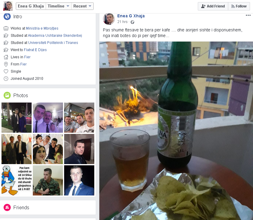 Enea Xhaja, oficer i NATO-s me shërbim në Bunavi të Vlorës, u gjet në banesë në gjendje të rëndë pasi kishte konsumuar helm. Ai u transportua në spital nga të afërmit por ndërroi jetë pas disa orësh.