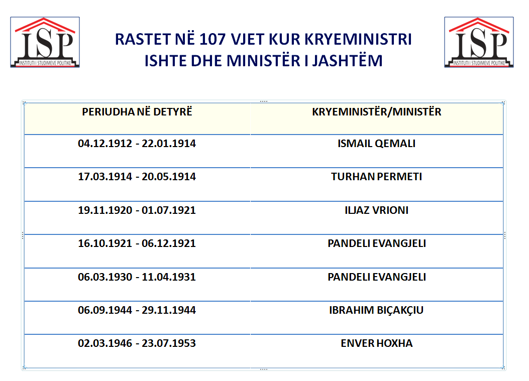 “Në fakt në traditën tonë shtetërore ka pasur edhe raste të tjera kur kryeministri ka ushtruar edhe postin e Ministrit të jashtëm. Tabela e hartuar nga Instituti i Studimeve Politike (ISP) paraqet rastet në 107 vjet, por në tërësi, kanë qenë kabinete në situata të jashtëzakonshme (1912, 1914, 1921, 1944) apo për periudha shumë të shkurtra kohore.