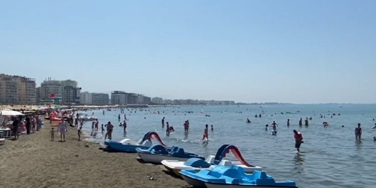 Temperaturat e larta të fundit të korrikut e kanë gjetur Shëngjinin të mbushur me pushues.