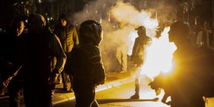 Dita e parë e protestës së saj u zhvillua në atmosferë tensioni. Mes dy palëve fluturonin shishe, pjesë të gardhit metalik dhe mjete piroteknike, ndërsa nga “Qacilandi” dëgjoheshin këngë nacionaliste. Në atë anë ndodhej edhe Novkoviçi.